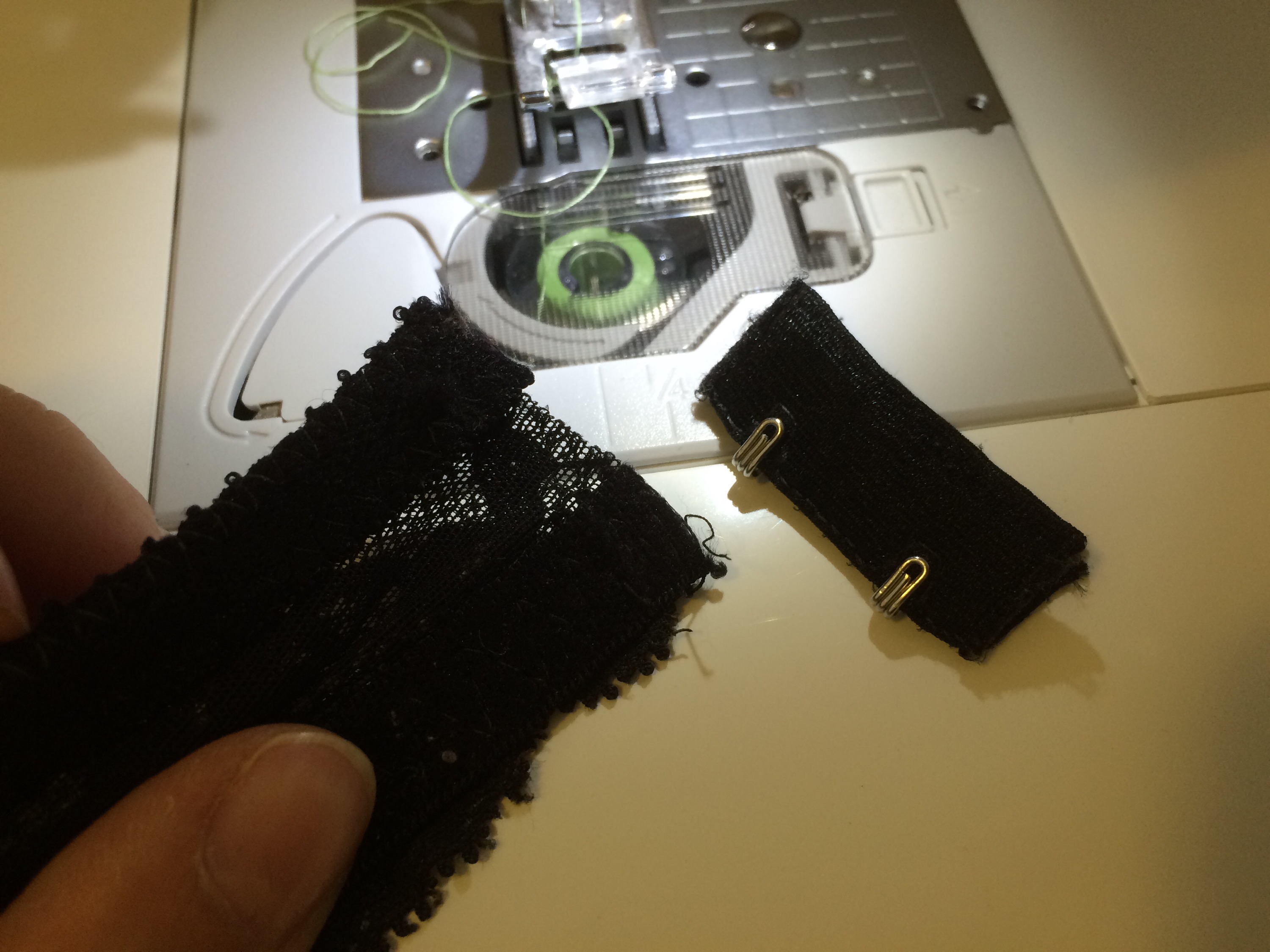 Dann ein Stück abgeschnitten vom BH abgeschnitten und die Verschlüsse wieder angenäht.