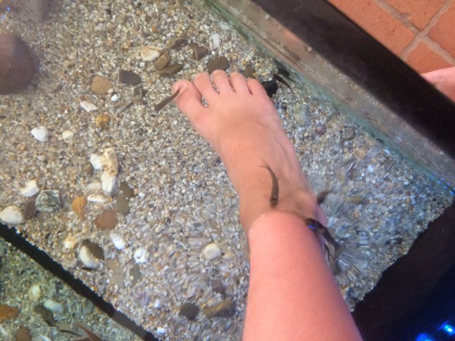 Der Park ist sehr zu empfehlen. Das hat uns allen großen Spaß gemacht. Hinterher hatten wir schöne weiche Füße und die Großen haben noch Knabberfische für den Feinschliff rangelassen.