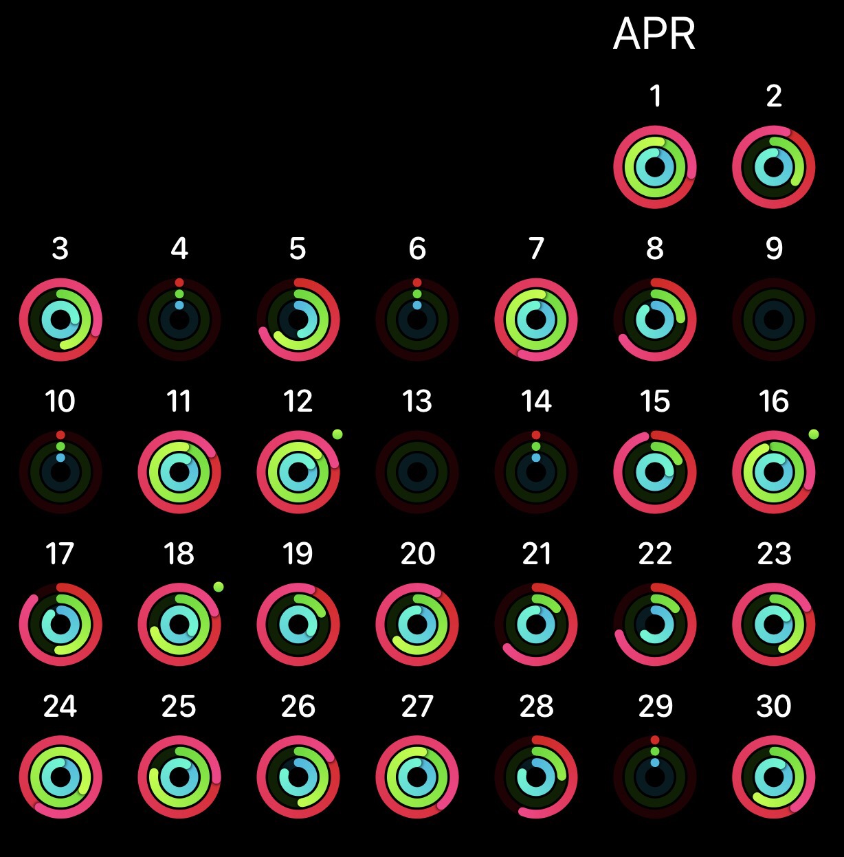 Hier mal ein Vergleich meiner Aktivität von April und Mai. Im Mai habe ich deutlich öfters meine Kreise geschlossen.