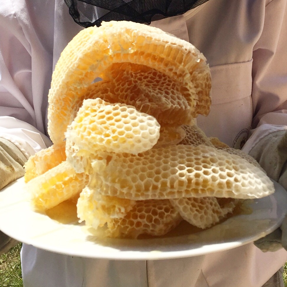 Letztes Wochenende musste ich schon ein bisschen Honig ernten, weil die Bienen des eingefangenen Schwarms wild gebaut hatten.