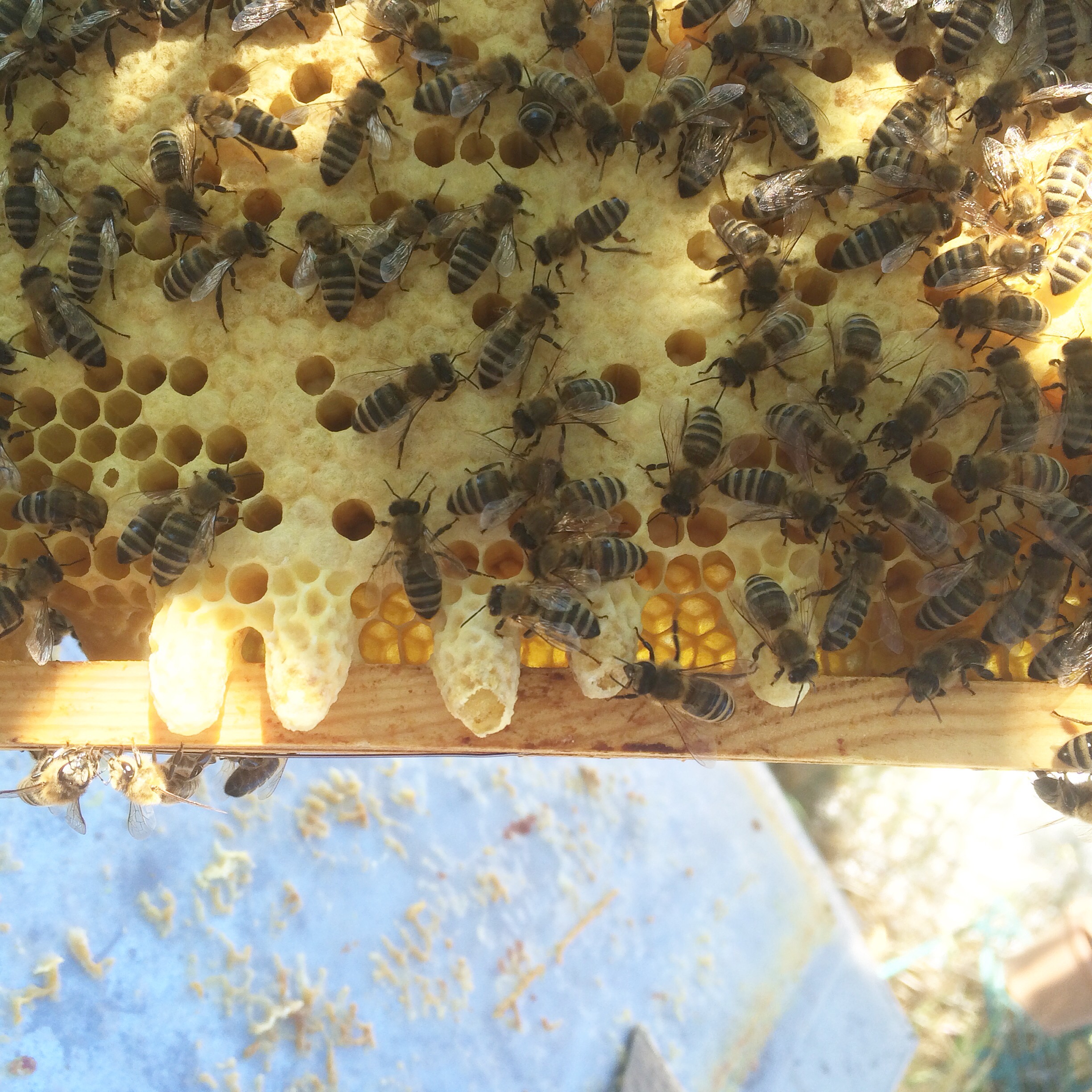 Gestern bei der Durchsicht hab ich entdeckt, dass mir eben dieses Volk geschwärmt ist. Die Königin war weg und hat mir ein paar Weiselzellen dagelassen. Für Nachwuchs ist also gesorgt, aber ich hätte sie schon gerne behalten. Ich habe nicht bemerkt, dass sie geschwärmt sind. Leider.