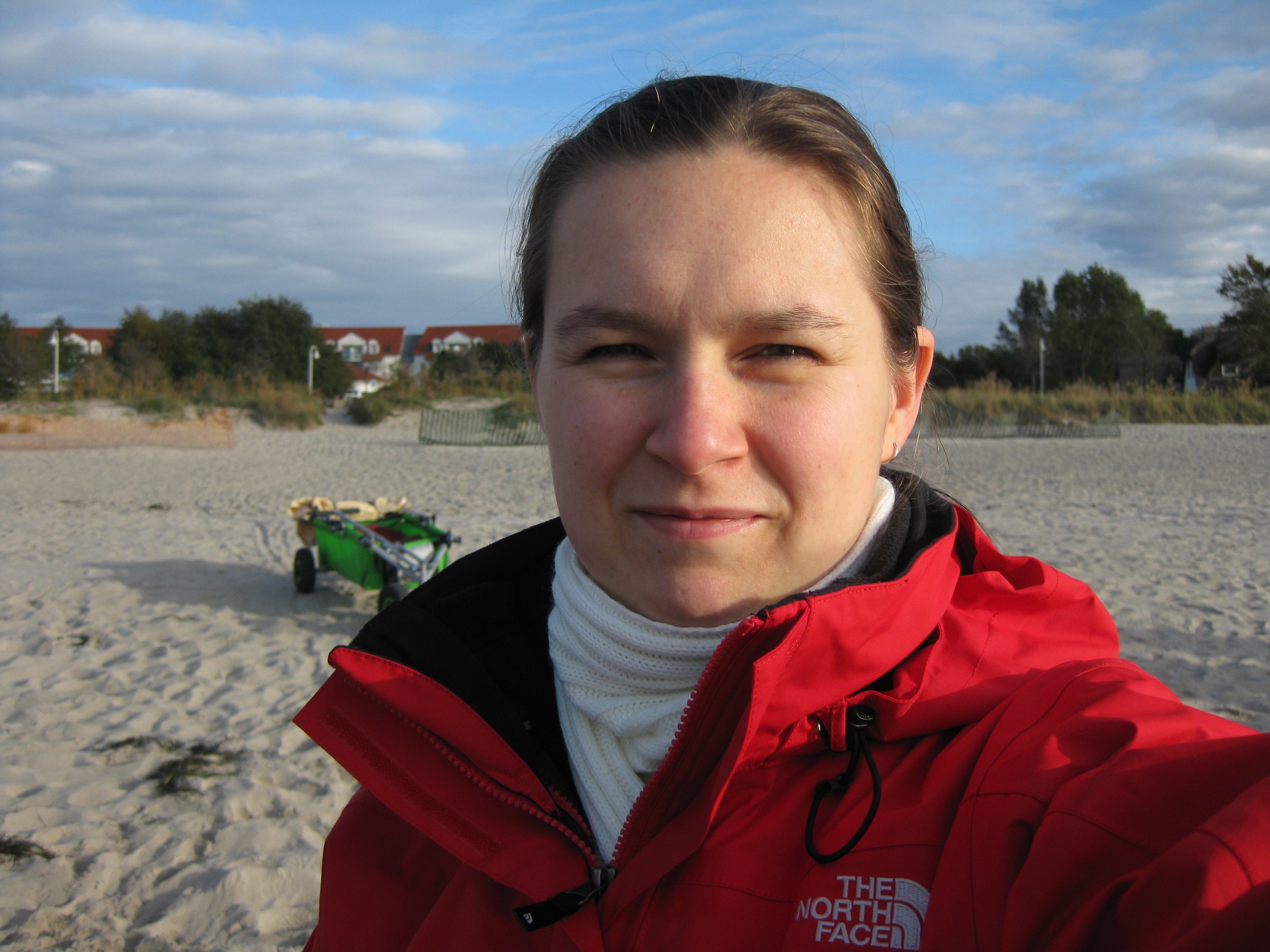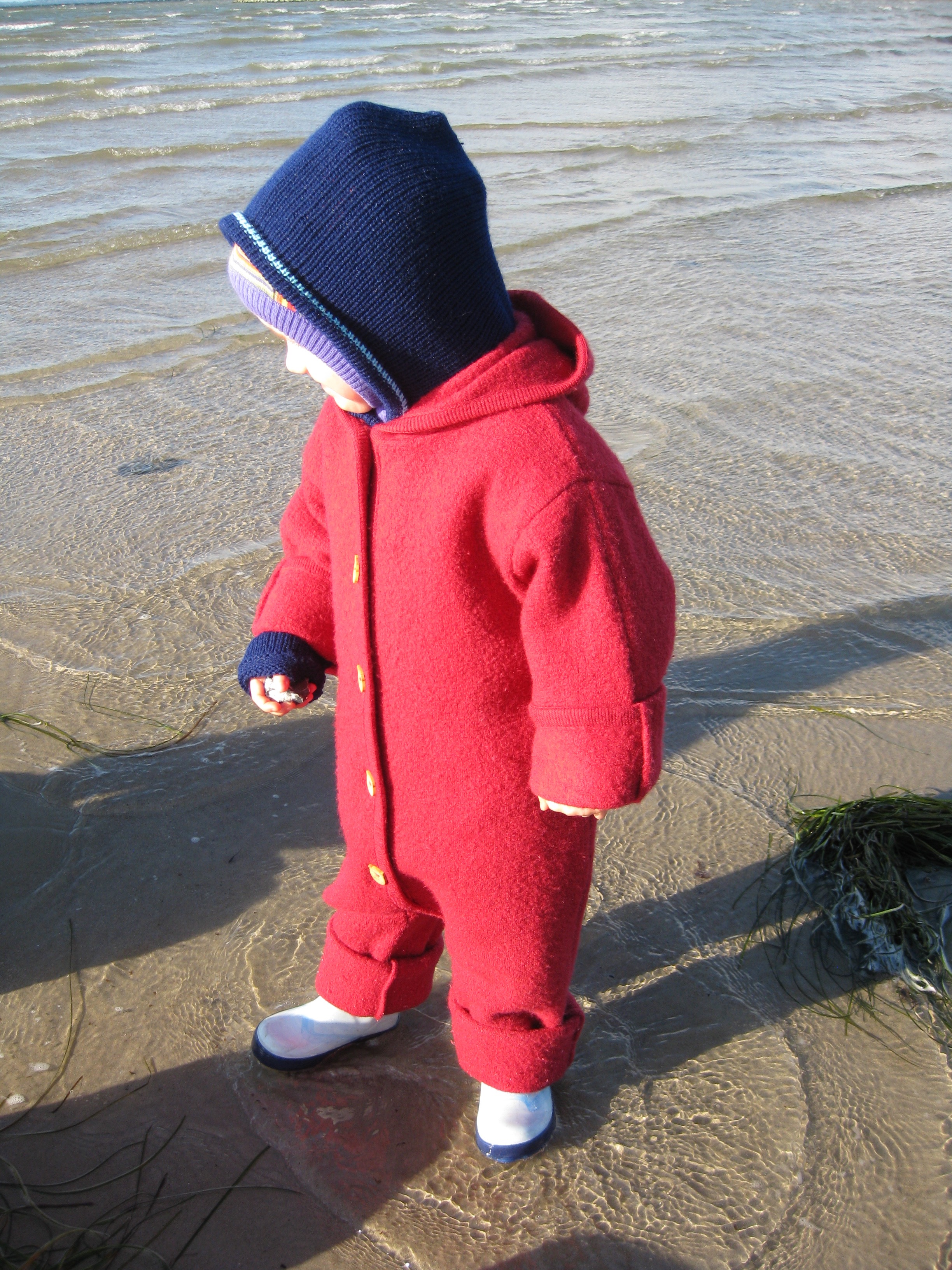 Später gingen wir zum Strand. Eingepackt mit Gummistiefeln und Regensachen. Das war sehr schön. Das Wetter war herlich. Ganz windstill und fast warm.