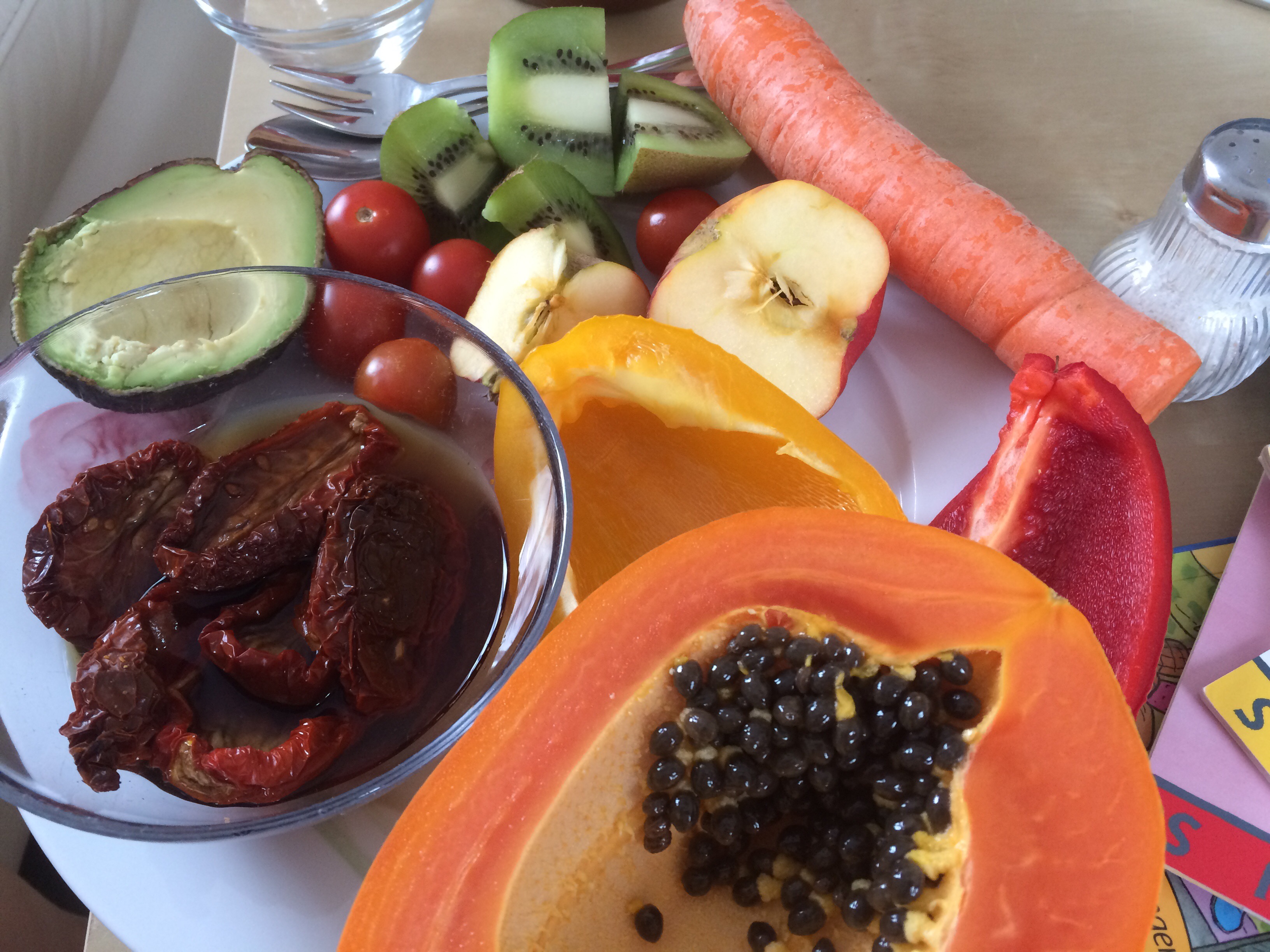 Da ich noch stille fiel ein komplettes Fasten vom Essen für mich (leider) aus. Stattdessen habe ich entschieden Rohkostfasten zu machen. Das heißt ich habe versucht ausschließlich Rohkost zu essen. Im Rückblick würde ich sagen ist es mir zu 80% gelungen. Ich habe dadurch etwa 4-5 kg abgenommen in den 6 Wochen. Ein schöner Nebeneffekt. Leider habe ich glaube ich inzwischen alles wieder zugenommen, weil seit Ostern viel zu viel gegessen habe, aber das ist eine andere Geschichte.